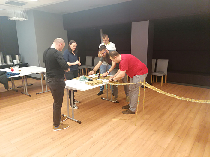 Mogłoby się wydawać, że to tylko kilka bambusowych tyczek, gumki recepturki i dwa oddalone od siebie stoły. Ale w rzeczywistości? To wielki sprawdzian zespołu, komunikacji, pomysłowości i odwagi w działaniu.