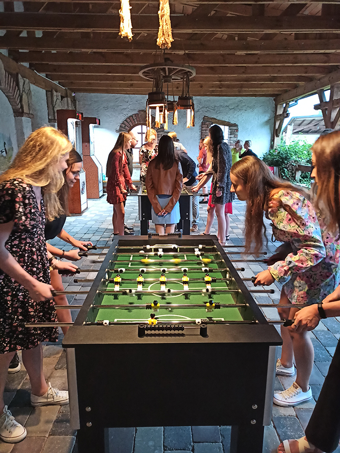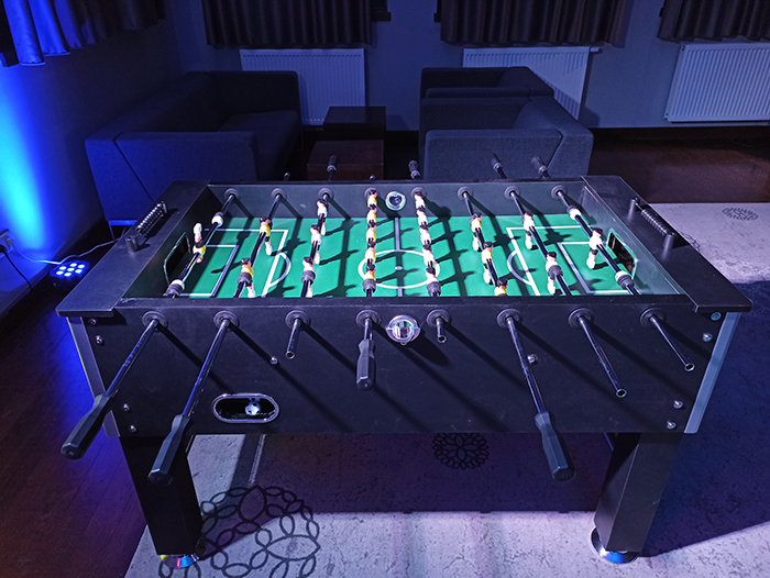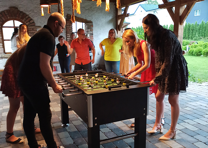 Na miejscu stawiamy profesjonalne stoły do piłkarzyków (liczba stołów dopasowana do wielkości grupy).